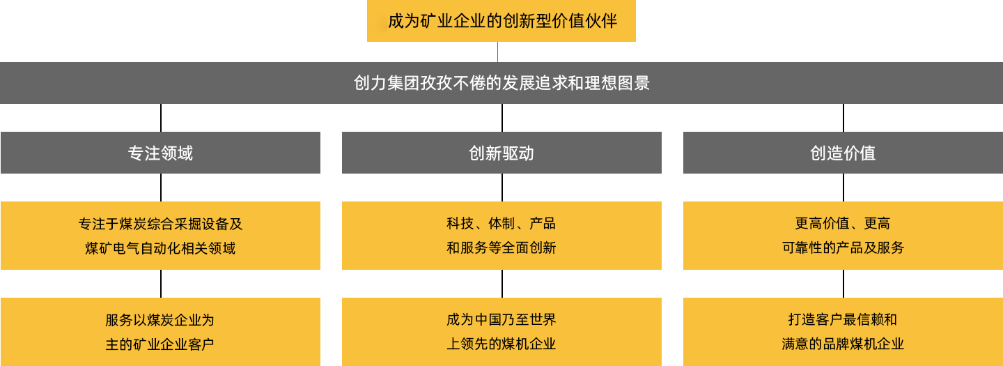 成(cheng)爲(wei)礦業齊(qi)業的(de)創新(xin)型價值夥伴,昰(shi)創力(li)集(ji)團(tuán)的(de)髮(fa)展(zhan)追求咊(he)理(li)想圖景。